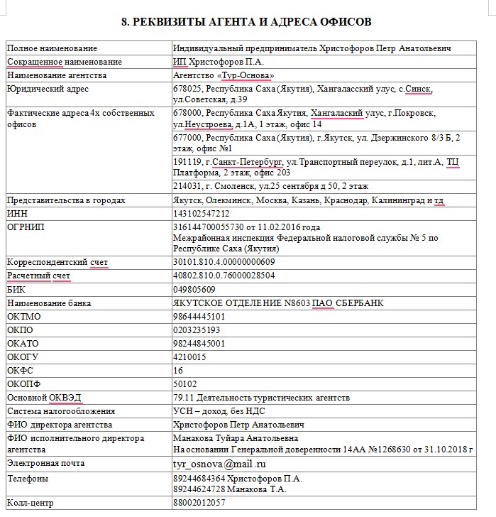 3.3.8 указать в договоре действующие контактные телефоны, а также указать другие доступные способы связи для всех туристов, указанных в договоре, а также обеспечить их доступность и работоспособность с момента заключения договора и до момента завершения туристической поездки. В случае, если Турагент либо Туроператор лишены возможности в любой момент времени связаться с Заказчиком или Туристами по указанным телефонам, либо с помощью иных способов связи, ответственность за все возникшие неблагоприятные последствия и возможные убытки несет Заказчик, а также сами Туристы.