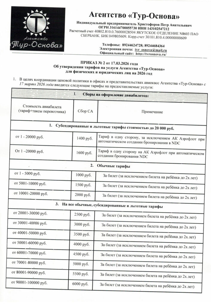 Приказ по сборам Агентства «Тур-Основа» на 2026 год от 17 марта 2026 года
